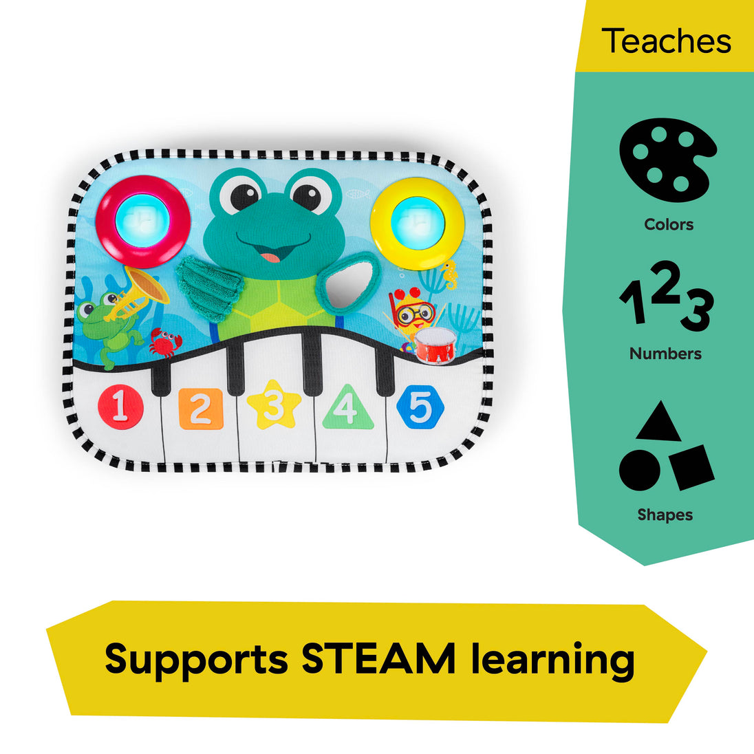 Baby will get a kick out of musical discovery with Baby Einstein Ocean Explorers Neptune’s Kick & Explore Musical Kick Pad & Crib Toy. This soft, unisex musical toy that helps baby explore melodies, create original songs, and learn letters, numbers, and shape names.