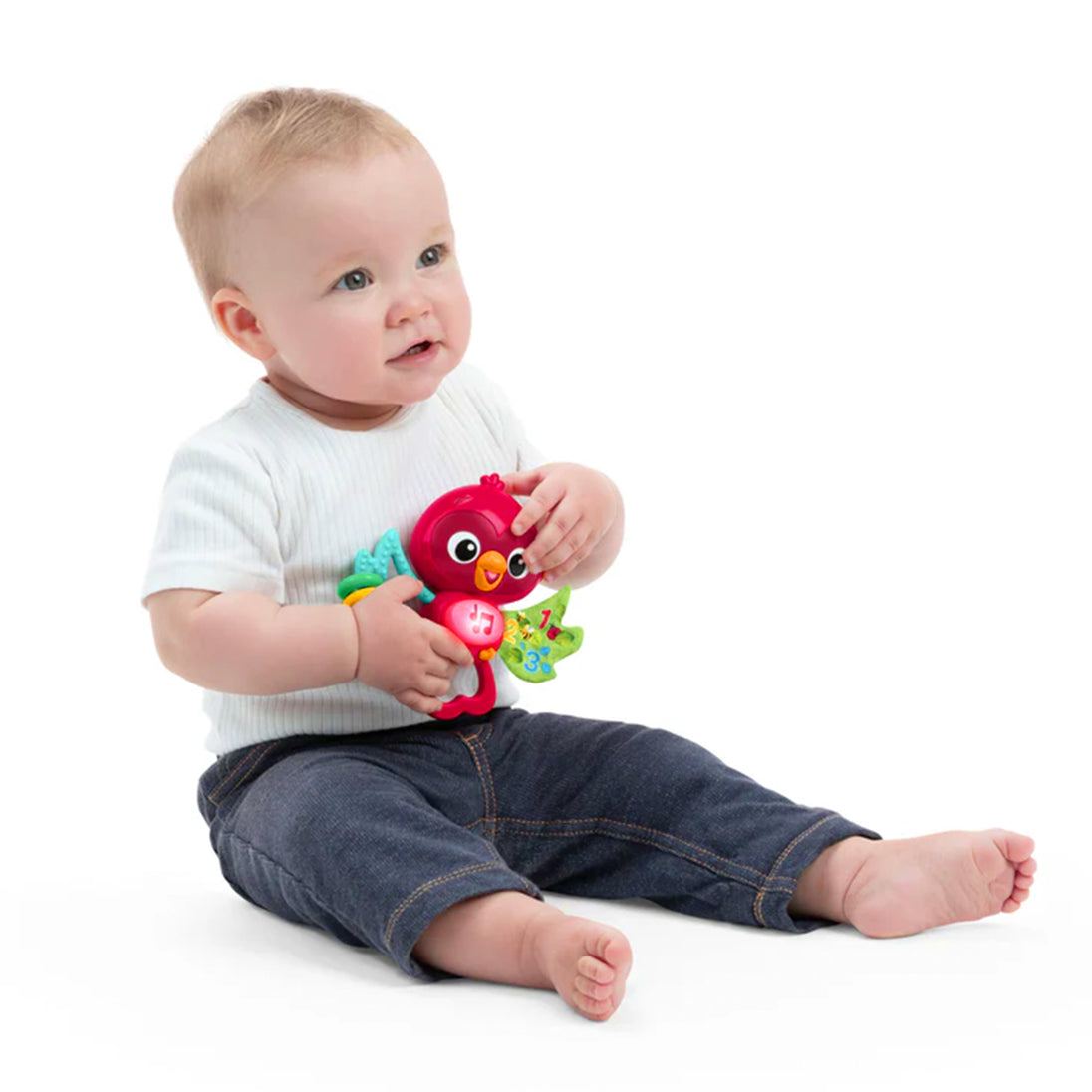 Help baby’s sensory discovery take flight with the Baby Einstein Roxy’s Bright Flight Musical Toy. This engaging handheld toy entertains baby on the go as they explore unique textures, classical melodies, bird sounds, and lights.