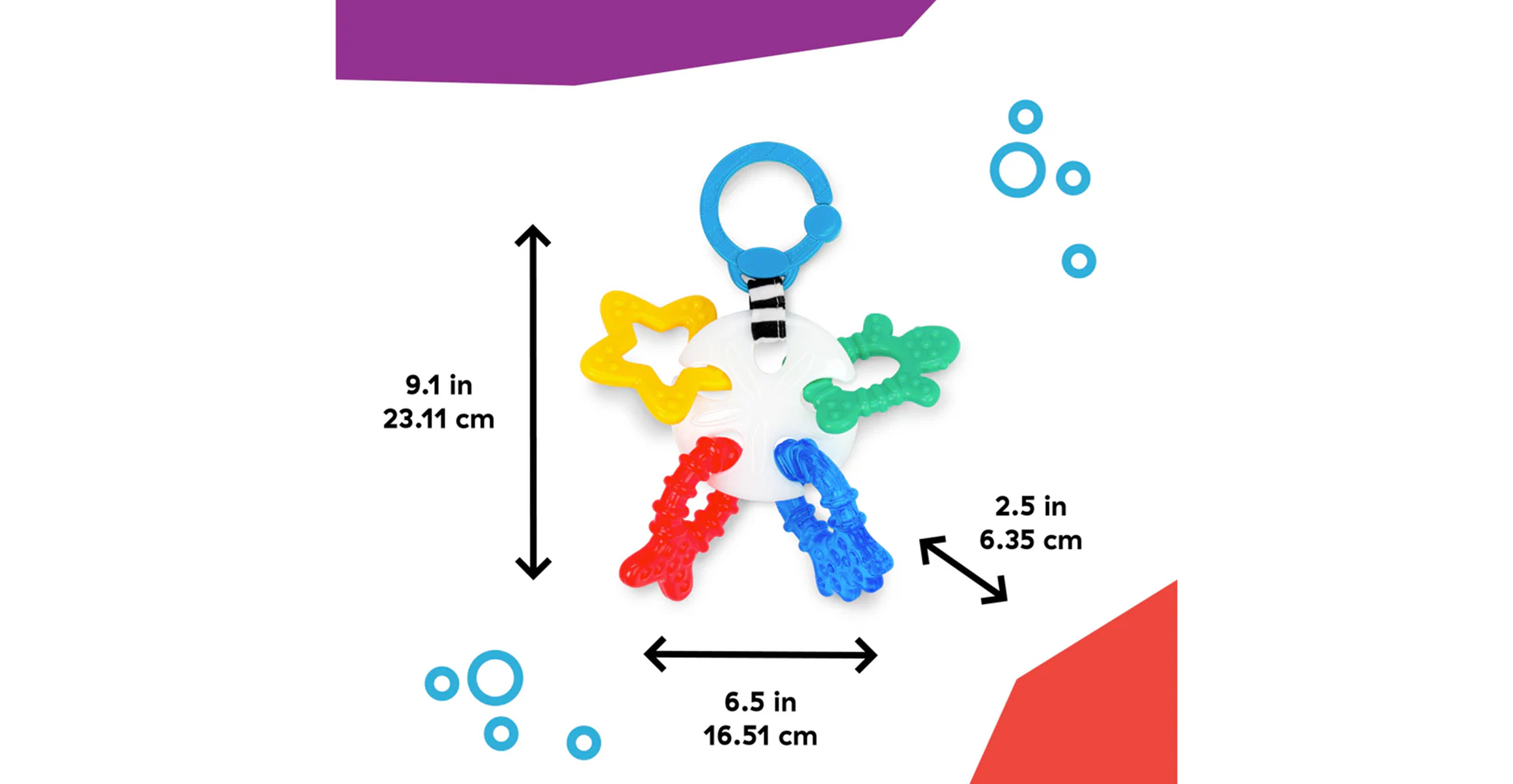 Features 5 textured sea animal teethers, 2 of which are water filled and chillable for extra teething relief.