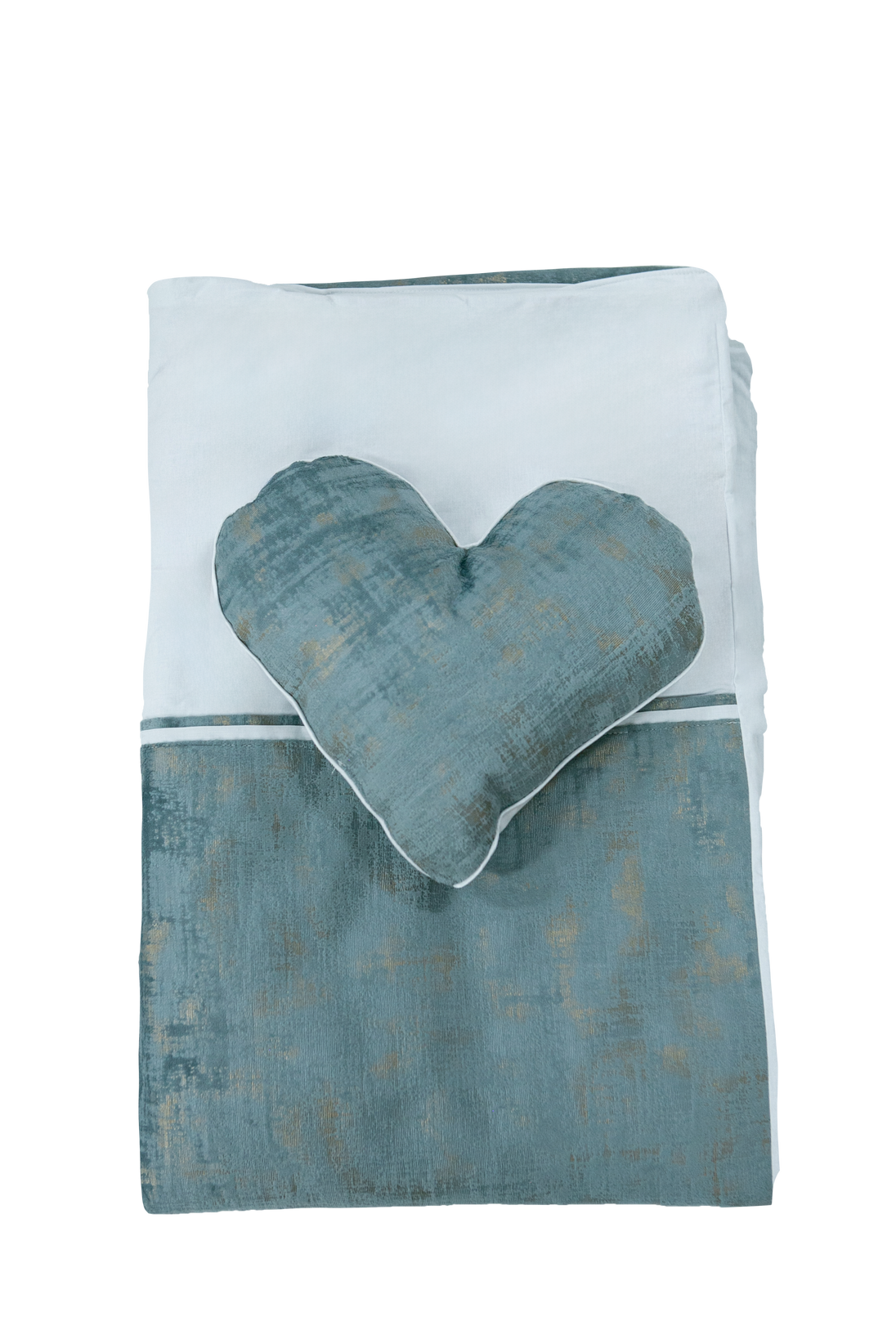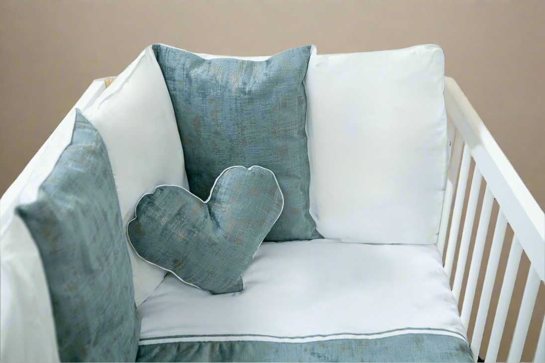 - A cot bumper and adorable heart-shaped pillow