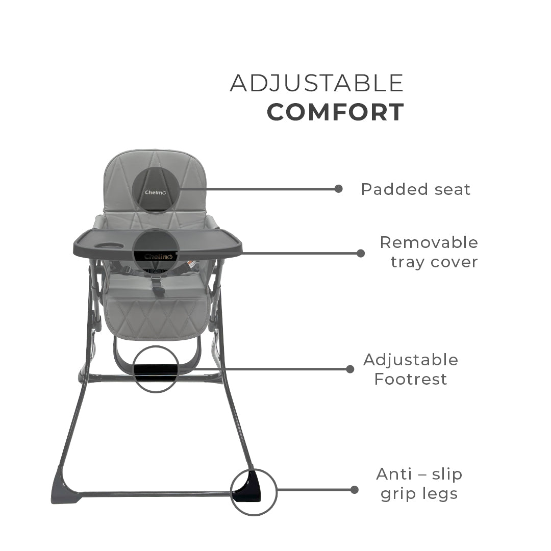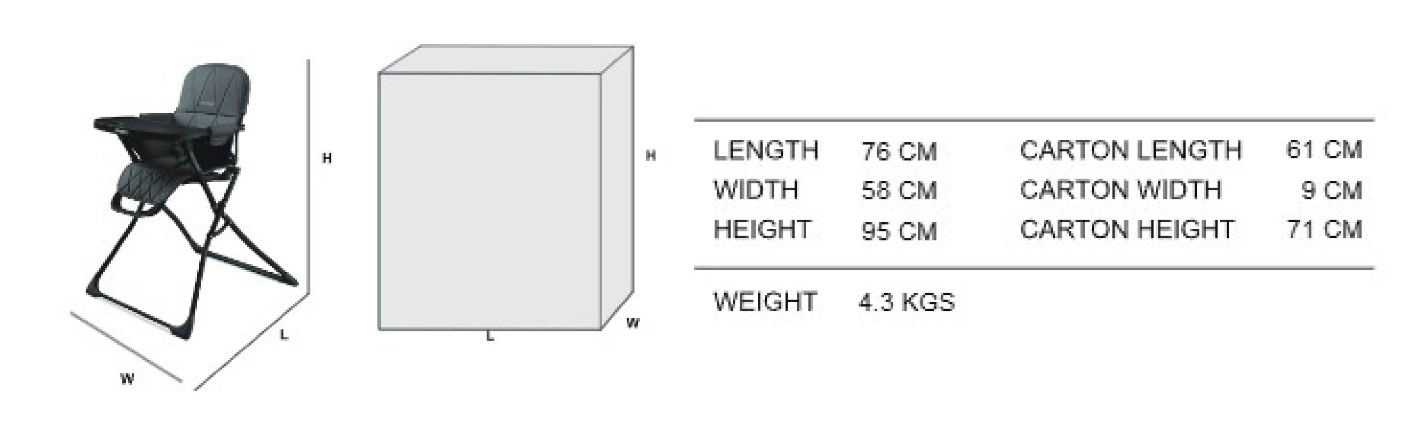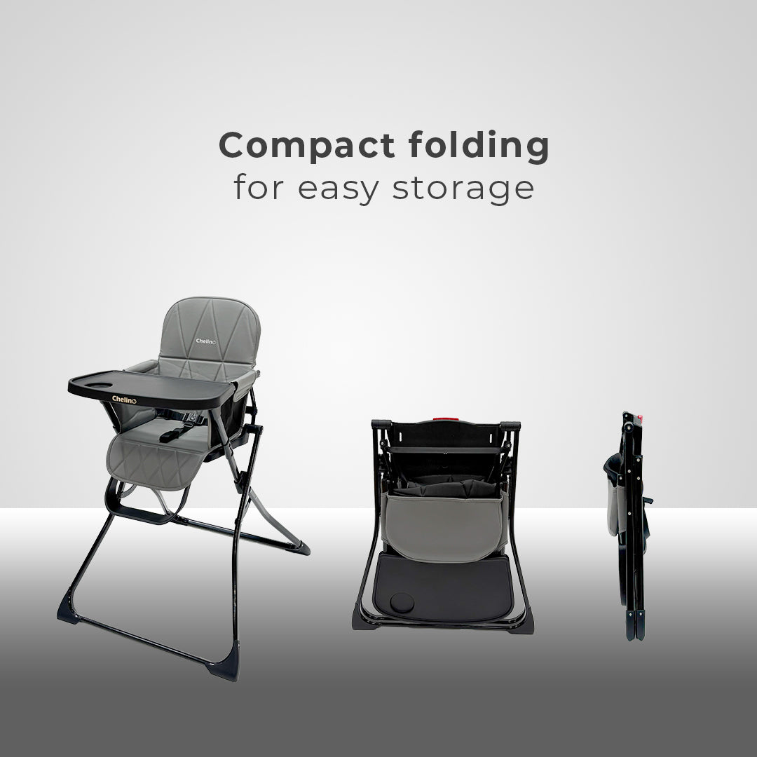 The Easy Fold High Chair in a sleek and modern dark grey. Designed with both style and practicality in mind, this high chair offers an effortless solution for parents looking for a convenient, space-saving seating option for their little ones.