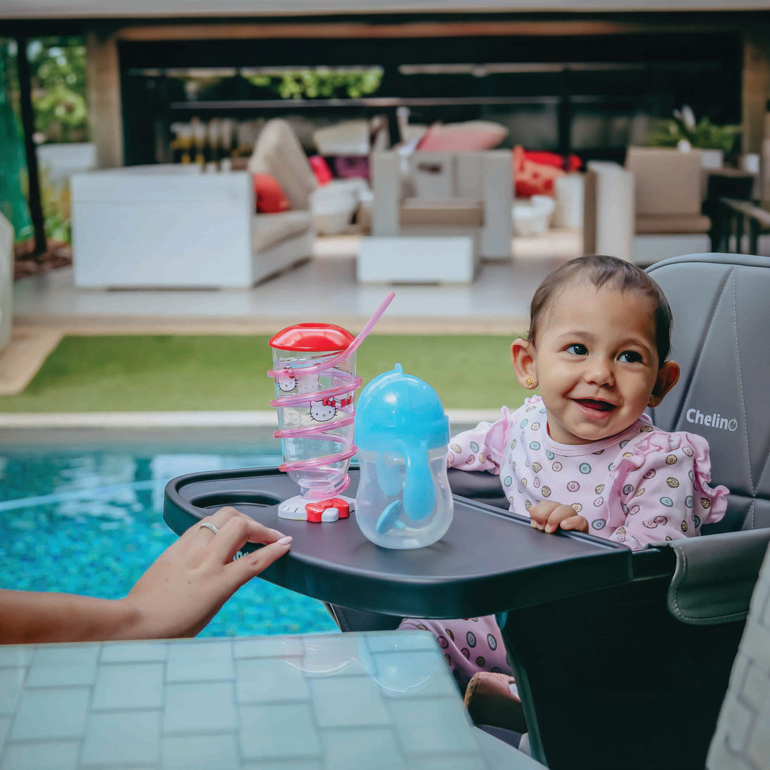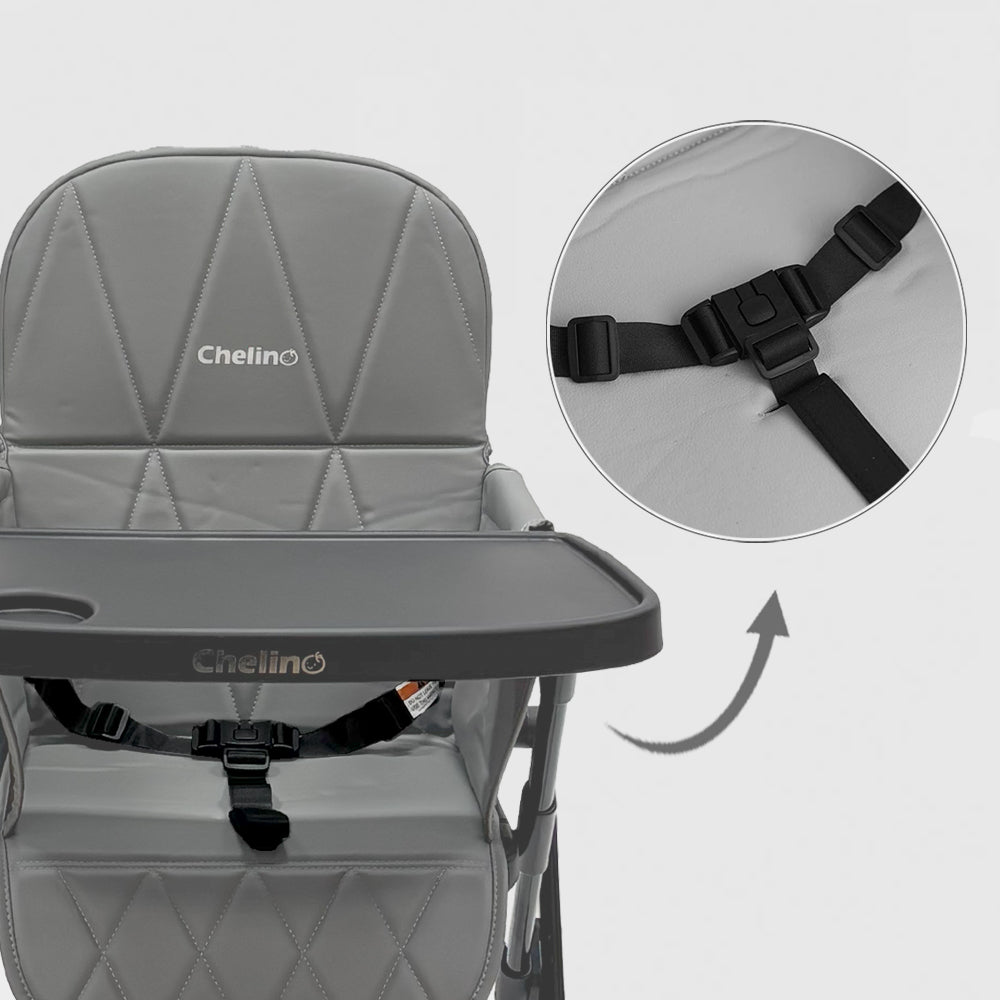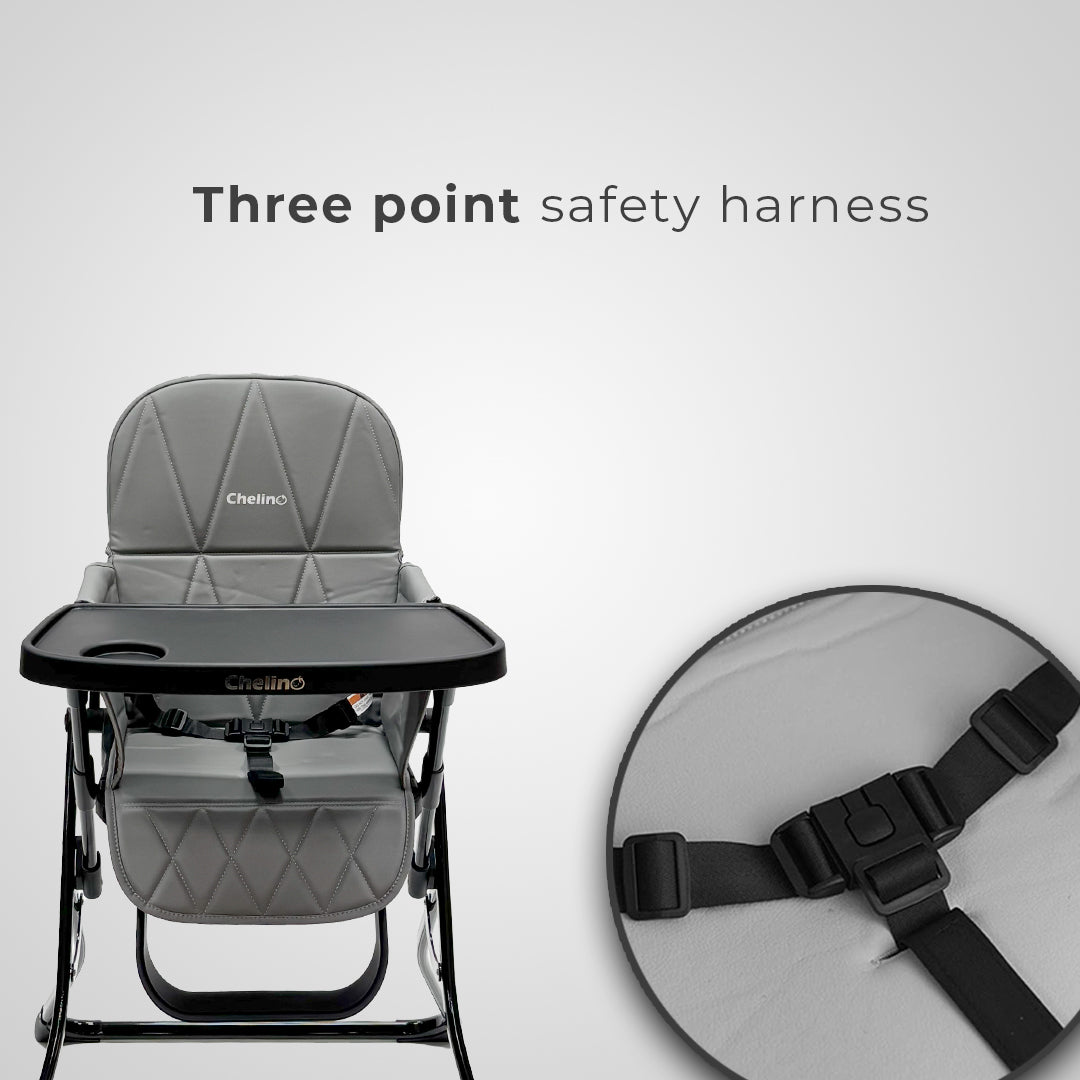 The Easy Fold High Chair in a sleek and modern dark grey. Designed with both style and practicality in mind, this high chair offers an effortless solution for parents looking for a convenient, space-saving seating option for their little ones.