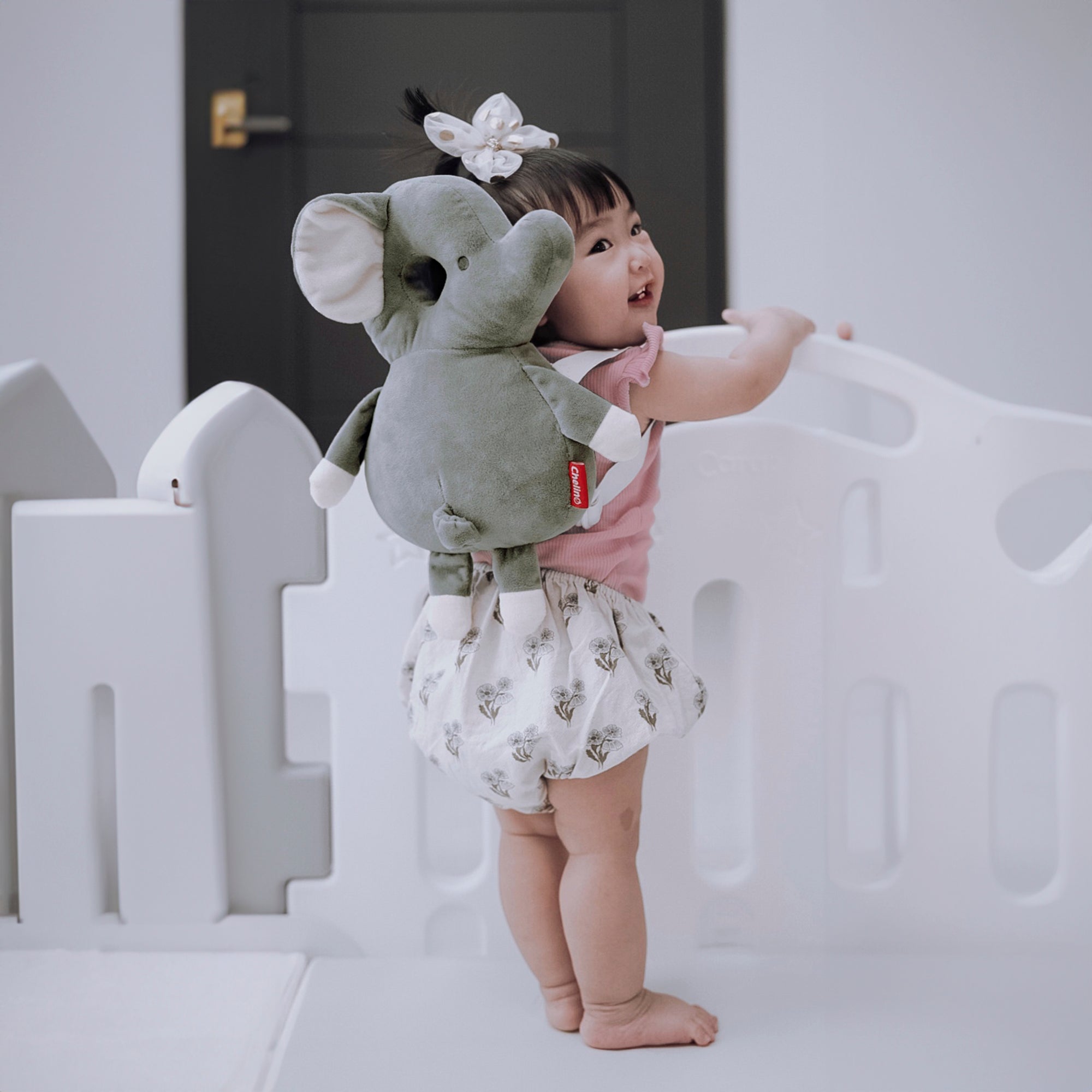 The Elle Head Protector is a charming elephant-shaped safety cushion designed to protect your baby as they learn to crawl, stand, and walk. This adorable character combines functionality with comfort, giving parents peace of mind and babies the freedom to explore.