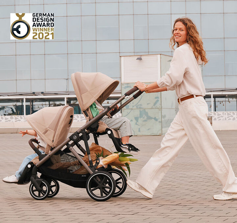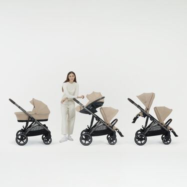 The Gazelle S double stroller has the perfect set-up for your growing family, with more than 20 configurations available. Features two large shopping baskets and a one-pull harness.