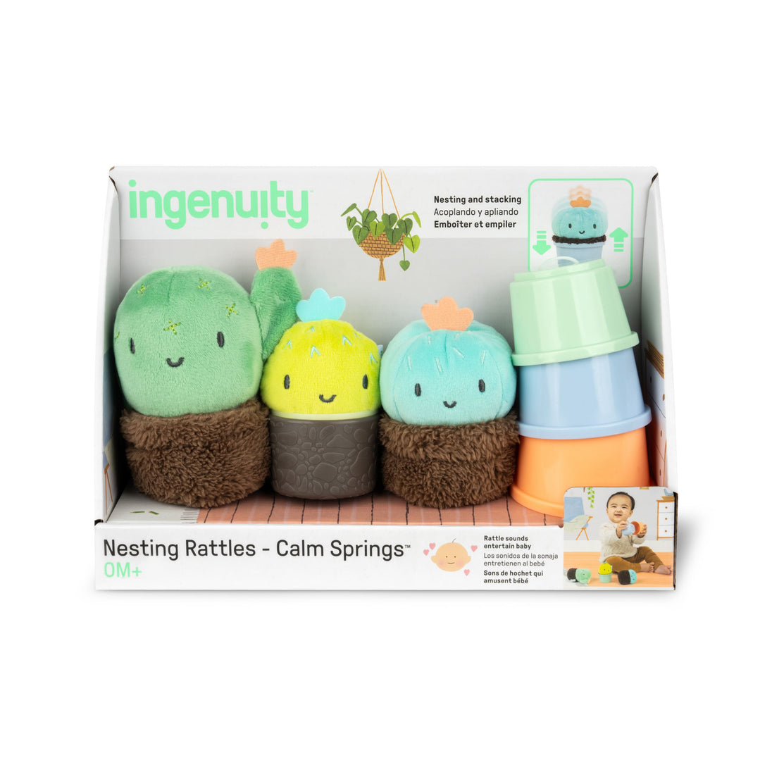 - Who says playtime can't double as fun, teaching time? With the Ingenuity Calm Springs Nesting Rattles, baby will have an elevated learning experience with a parent by their side