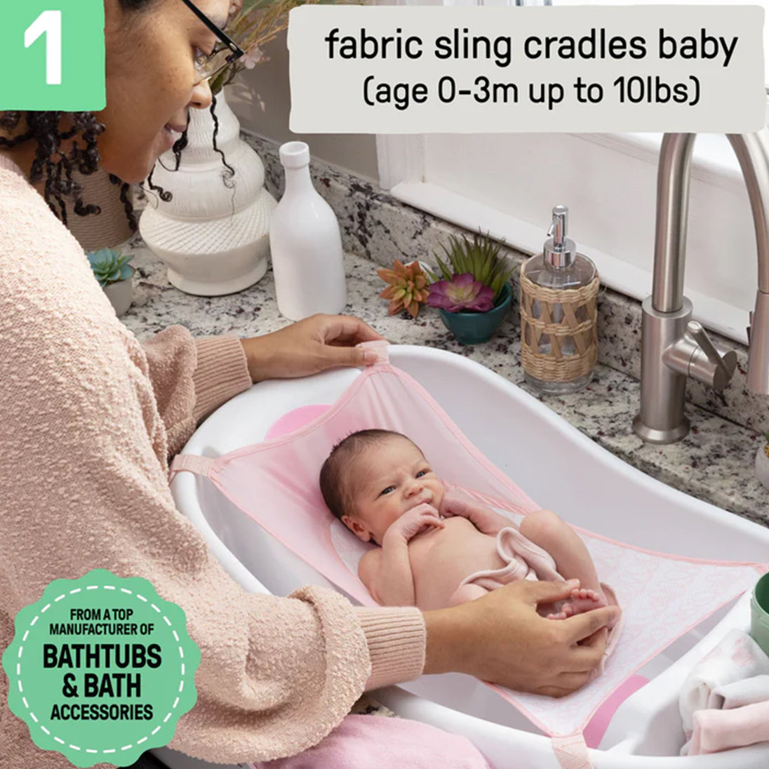 Designed for total comfort and support as baby grows from infant to toddler, the Comfy Clean Deluxe tub is sure to keep a smile on your little one’s face during bath time. This extra large tub from a Top Manufacturer of Bathtubs and Bath Accessories* includes a soft fabric sling that gently cradles your baby at their earliest stages.