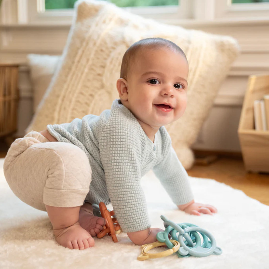 Introduce baby to the cutest crew ever with the Ingenuity Sheppy's Squad Toy Links! The nature-inspired character-shaped toys are made safe for baby, with 30% plant-based plastics. The BPA-free pack of characters (4 characters/12 total toy links) is all part of the Ingenuity party animals led by Sheppy the sheep, alongside Sylvi the rabbit, Kitt the fox, and Nate the bear.