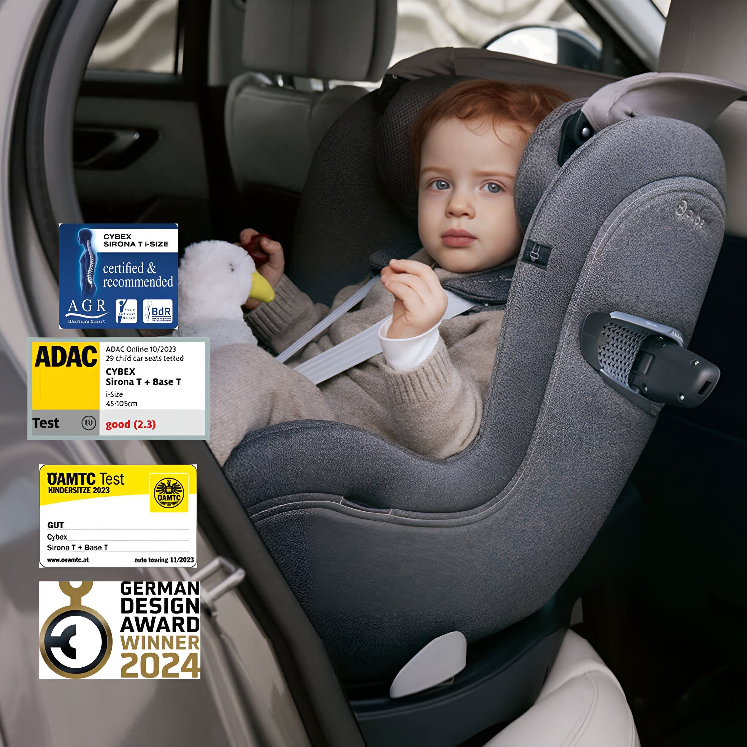 Awarded a “Good” rating in the ADAC test, the Sirona T i-Size rear-facing car seat features all-round air ventilation. Choose the Plus option for an integrated sun canopy. Only compatible with the Base T or Base Z2.