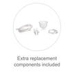 - Spare parts: spare parts are included when you do not have time to sterilize between pumping sessions.