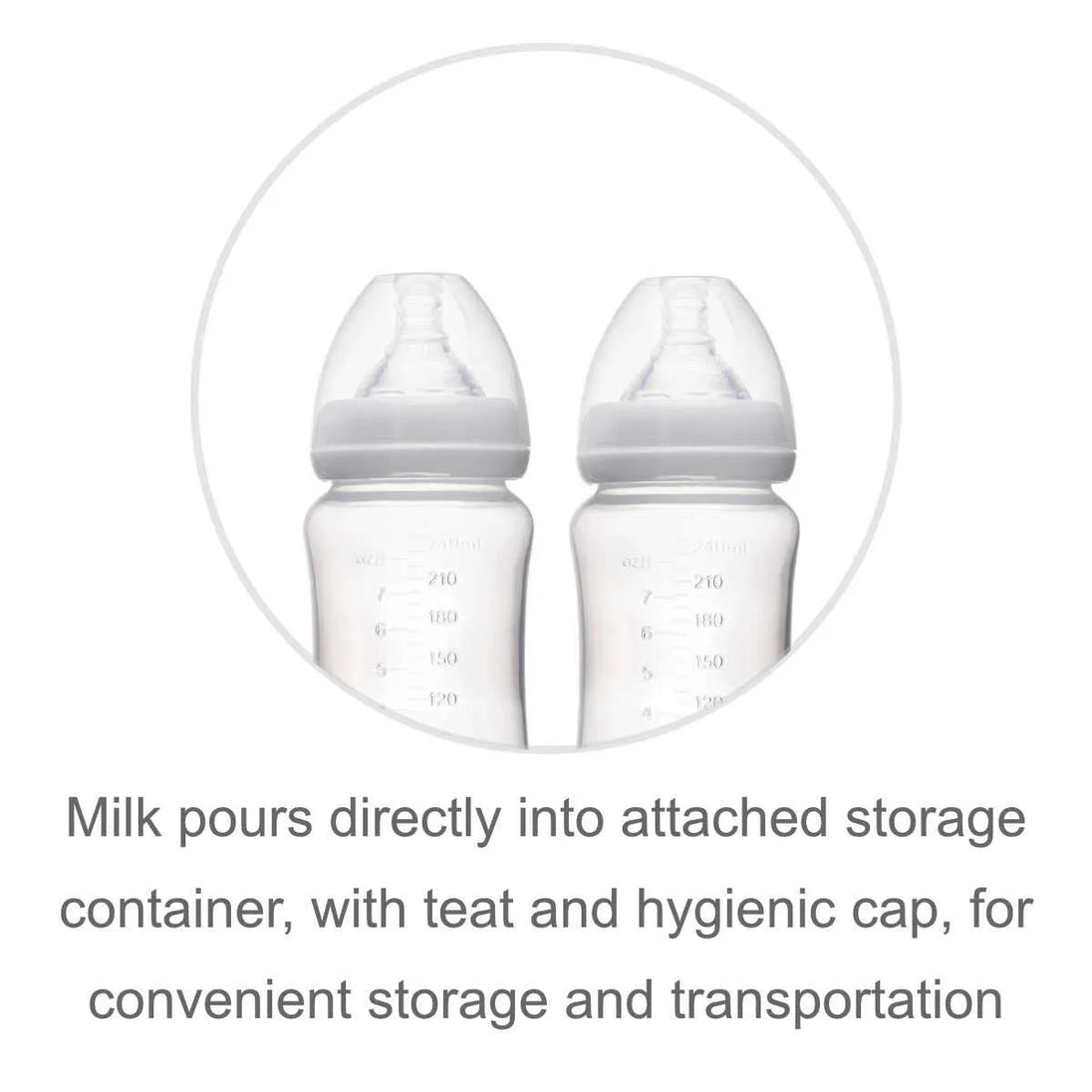 - Includes: 2 x motor units, 2 x pump bodies, 2x pump kits, 2x 180ml bottles + nipples, usb charge unit and silicone spare parts.