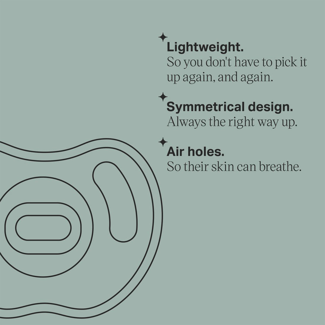 - Symmetrical orthodontic design: Our Ultra-Light dummy features a symmetrical silicone teat and with no ‘wrong’ side up, it will always be placed correctly in baby’s mouth.