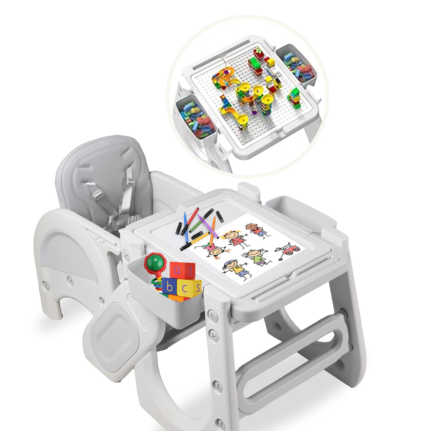 The Angel 5 in 1 High Chair is a versatile, multi-functional seating solution designed to grow with your child. Offering 5 distinct modes, it transitions seamlessly from a high chair to a booster seat and beyond, catering to your child’s feeding and seating needs as they develop. The high chair is designed to provide comfort, safety, and convenience for both parents and children.