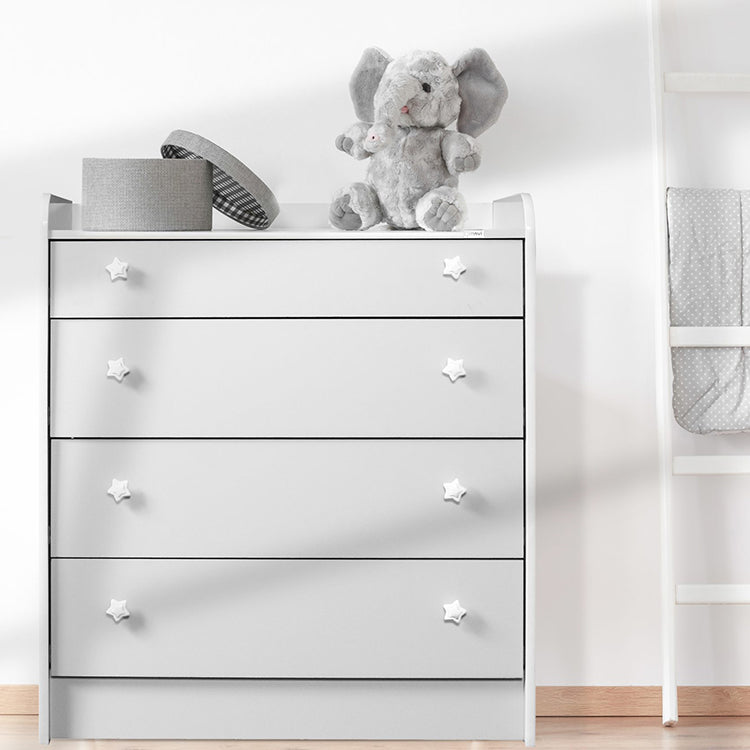 The Caden Baby Changing Station with 4 Drawers is the perfect blend of style and functionality. Its elegant finish and practical design will help you stay organized and make your nursery beautiful.