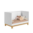 "Grows with your baby the Luan 2-in-1 Crib transforms into a toddler bed and features a stylish oak-and-white design perfect for modern nurseries."