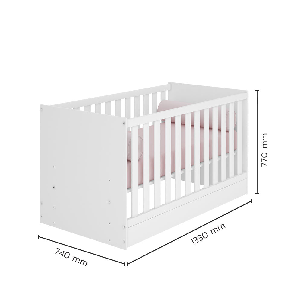CDEN TRINITY 2 IN 1 CONVERTIBLE BABY COT & BED WHITE