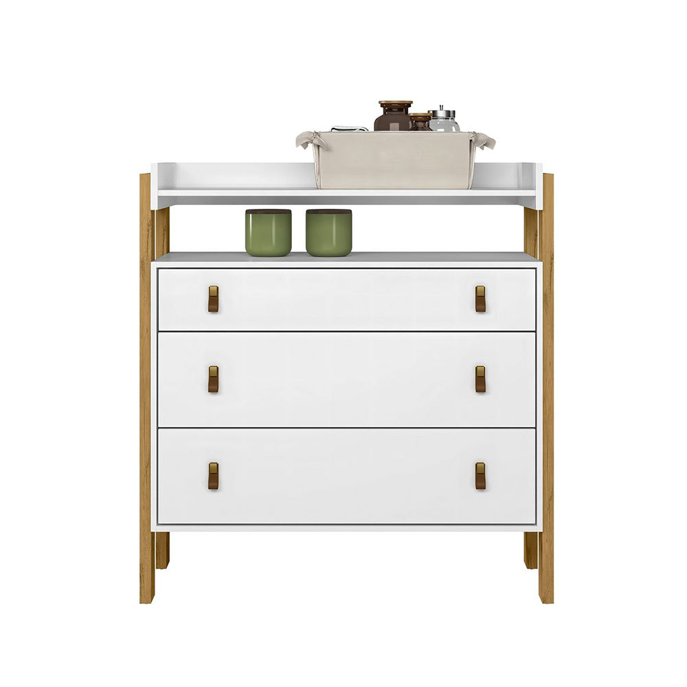 - Ample Storage for Everyday Essentials - Three deep drawers provide ample space for storing baby clothes, diapers, wipes, and blankets, keeping everything within arm’s reach. One open shelf offers quick access to frequently used items, such as lotions, creams, or small baskets for better organization. Each drawer is equipped with sturdy metal glides, allowing for smooth, silent opening and closing perfect for when the baby is asleep.