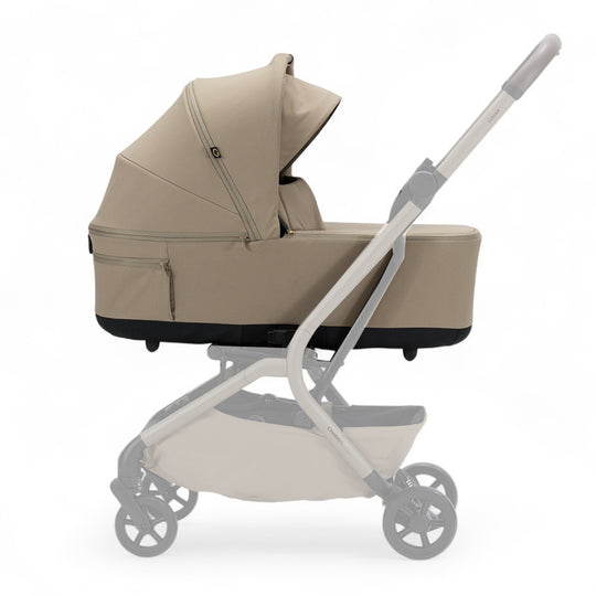An elegant, comfortable, and practical addition. The 'Peek-A-Boo' mesh window makes monitoring easy, ensuring good air circulation and providing peace of mind while on the go. The stylish design and quality materials make this carry cot a convenient and sophisticated choice for parents.