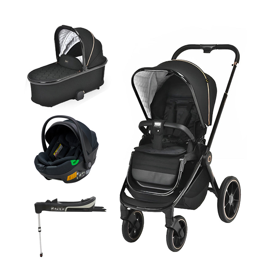 INCLUDES BELLA II SHINY GOLD & BLACK STROLLER, LUNAR BLACK CAR SEAT WITH CP33 BASE