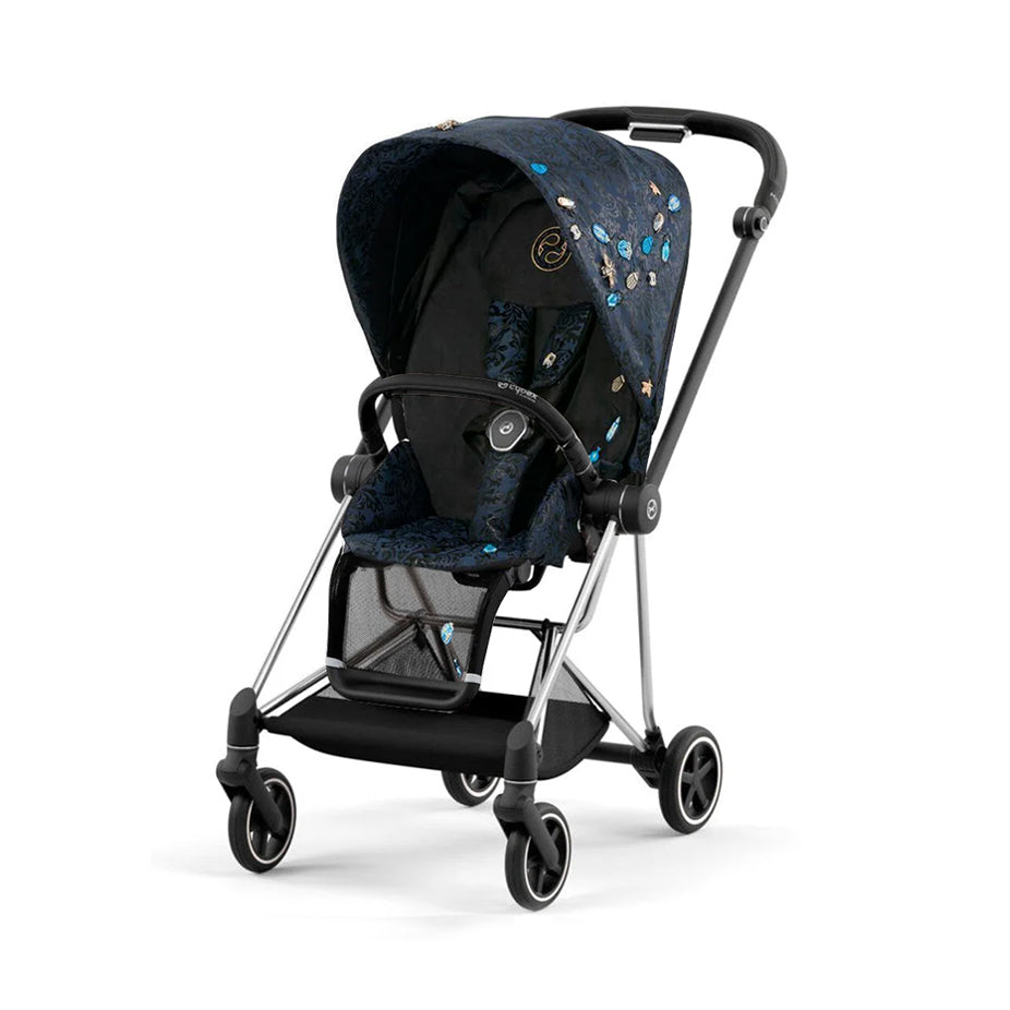 Turn everyday strolling into a statement of style with the MIOS Gen 3 Chrome Frame paired with the Jewels Of Nature Seat Pack and Carry Cot.