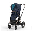 The Cybex Priam Gen 3 with its stunning Rose Gold Frame and stylish Nautical Blue Seat Pack combines luxury design with exceptional functionality. The rose gold chassis brings a premium, fashion-forward look, while offering smooth all-wheel suspension, effortless maneuverability, and a strong, stable build.