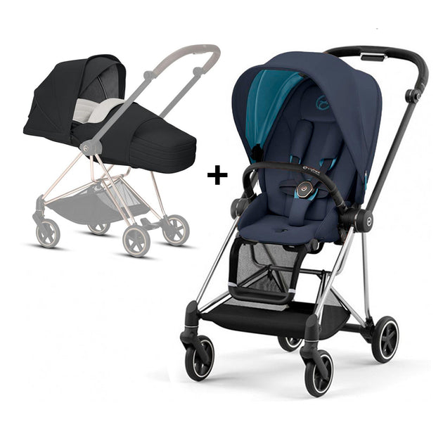 Turn everyday strolling into a statement of style with the MIOS Chrome Frame paired with the Soho Grey Seat Pack and the Black Lite Carry Cot S.