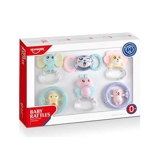 HE0124 BABY RATTLES 6PC PESTLE COLOURS