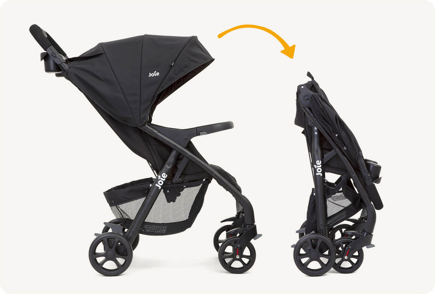 Never mind if your hands are full – just engage the fold, then gravity will tuck the muze™ lx into a freestanding compact fold that’s perfect for small spaces.