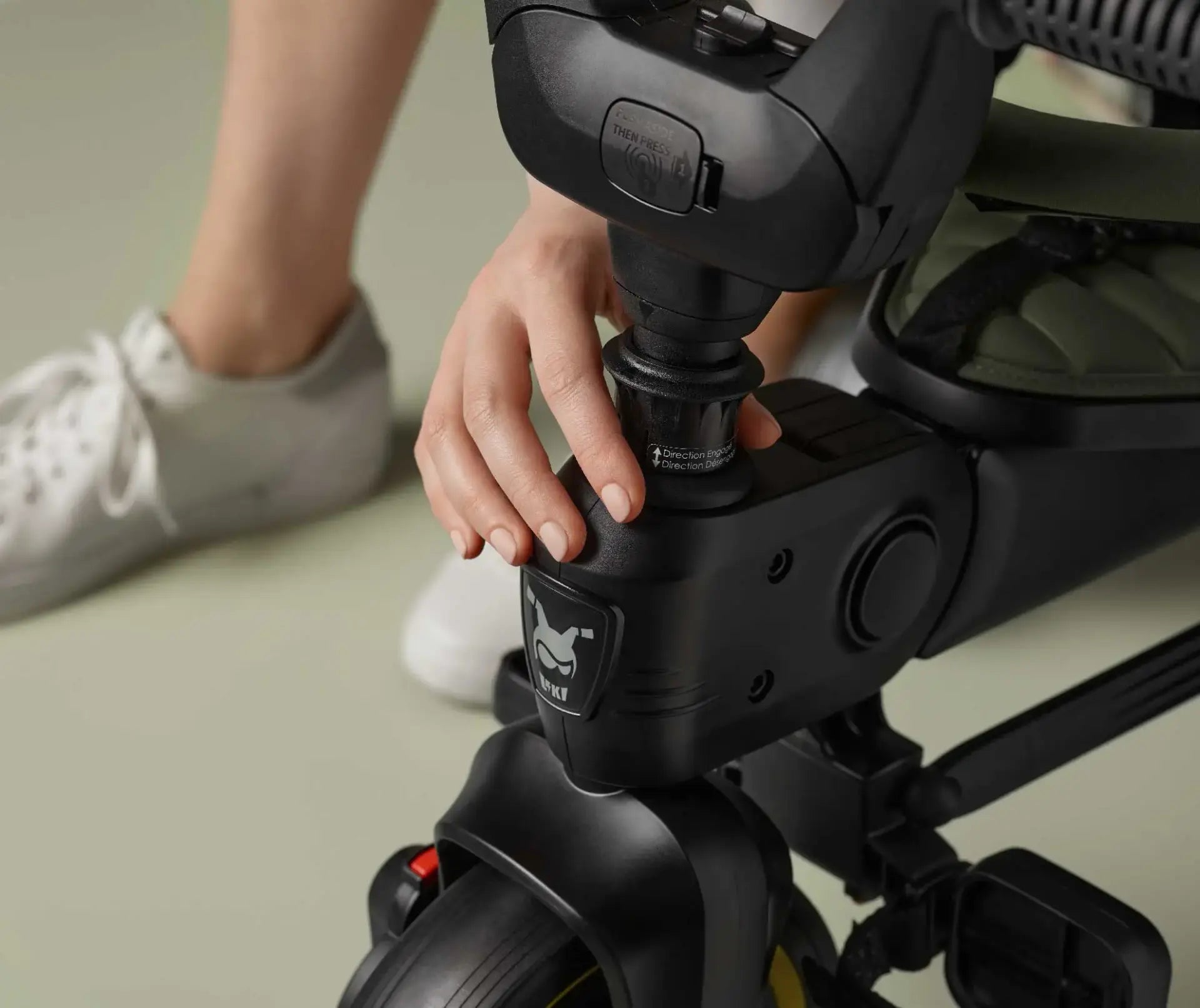 Liki Trike boasts a convenient backrest folding lever, thoughtfully integrated to allow seamless adjustments to the backrest recline position.