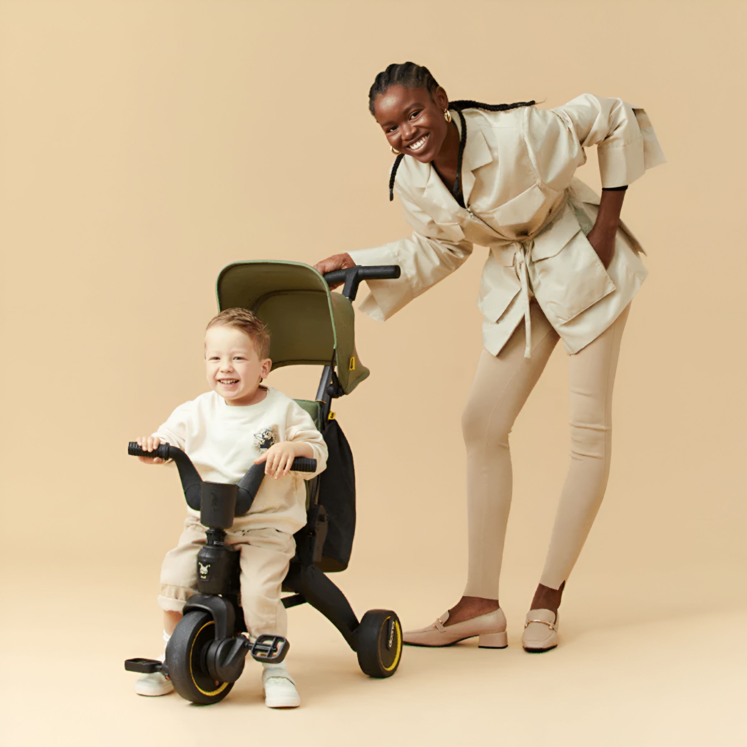 Liki Trike is designed to provide both parent and child control over steering and pedaling through a simple clutch system. This feature allows young children to experience the joy of pedaling and steering while parents have full control.