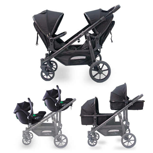 INCLUDES BELLA II SHINY GOLD & BLACK STROLLER, LUNAR BLACK CAR SEAT WITH CP33 BASE