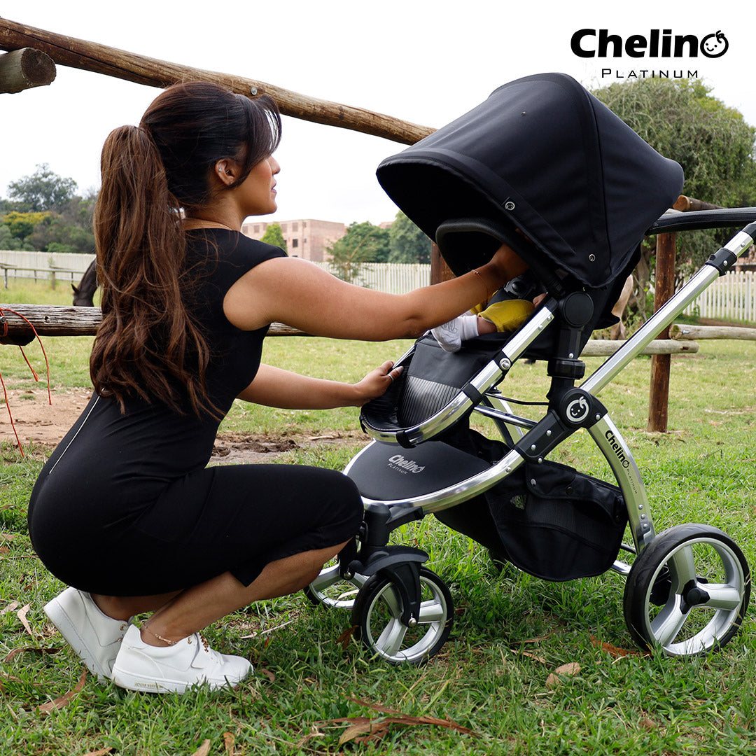 The Chelino Platinum Black Buzz 2 in 1 Stroller is set to be the perfect solution for a modern family. Featuring style and luxury with a strong aluminium frame and features that will ensure your baby’s comfort and safety.