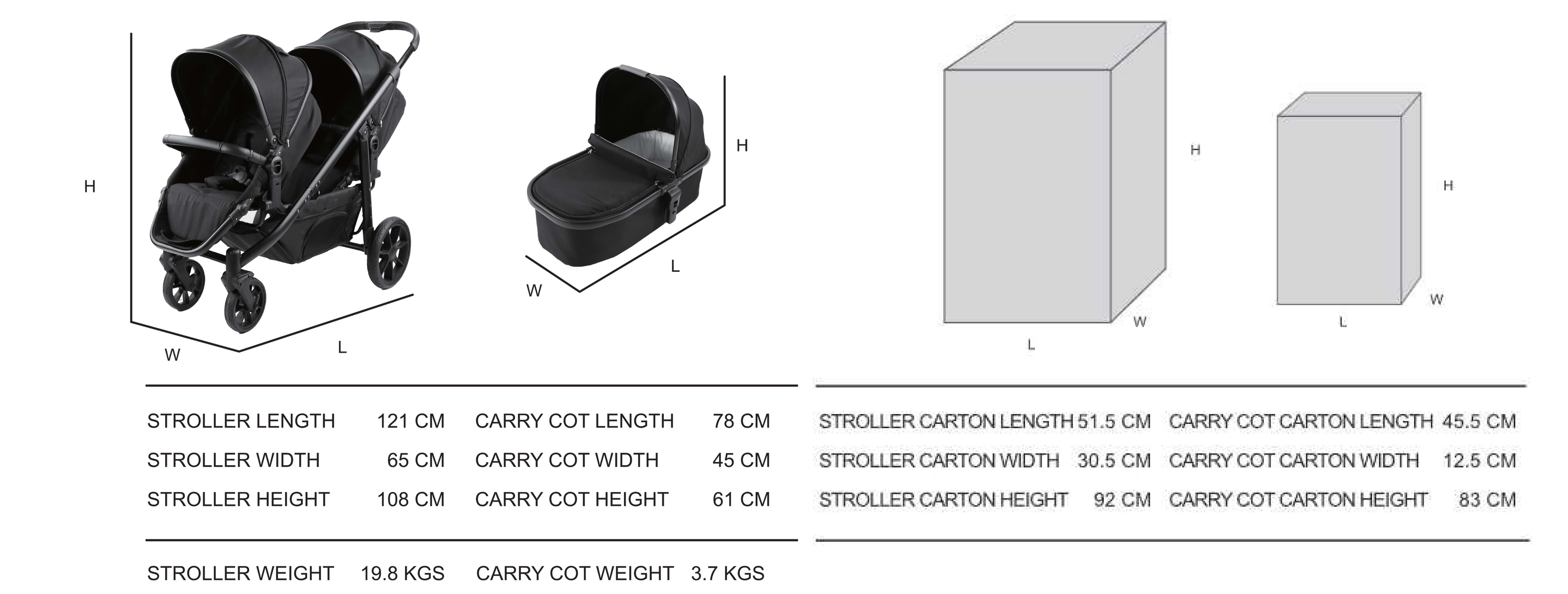 Stroller Recommended use : from 6 months up to 18 kgs each