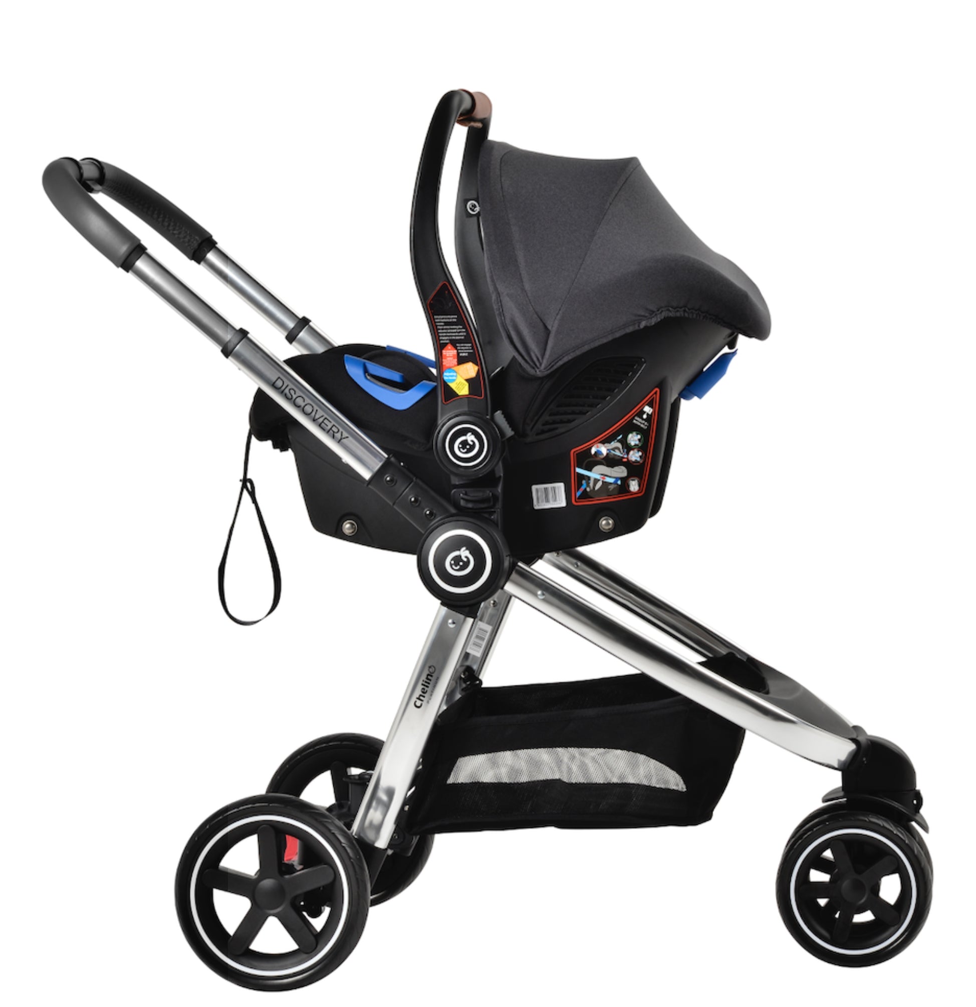 Discover the world with the Discovery Travel System Chrome - the next generation of strollers for your everyday adventures. This revolutionary three-wheeler is specifically designed for comfortable and smooth rides with your little one.