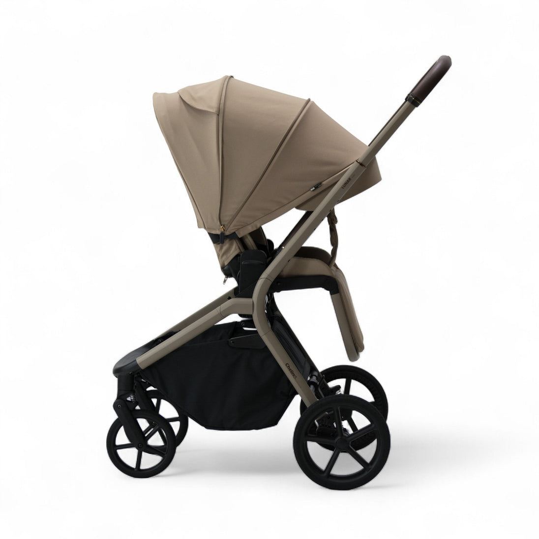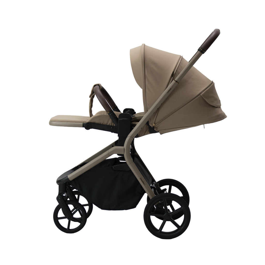 The Lunar URBN features an innovative fold-with-cot system, a design that removes the hassle of taking off the carry cot before folding.