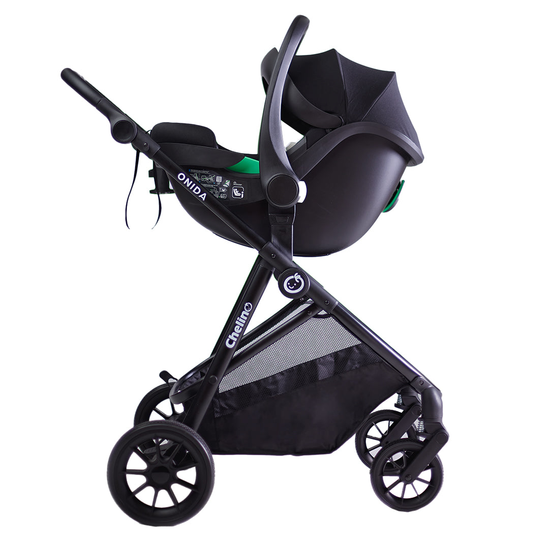 The Onida Flex II Travel System combines a sleek, modern design with exceptional functionality, offering a stylish look that is sure to turn heads. Beyond its aesthetic appeal, this stroller is lightweight and highly maneuverable, making it the perfect choice for on-the-go parents. Its compact size and responsive wheels ensure smooth, effortless navigation, even in crowded or busy spaces.