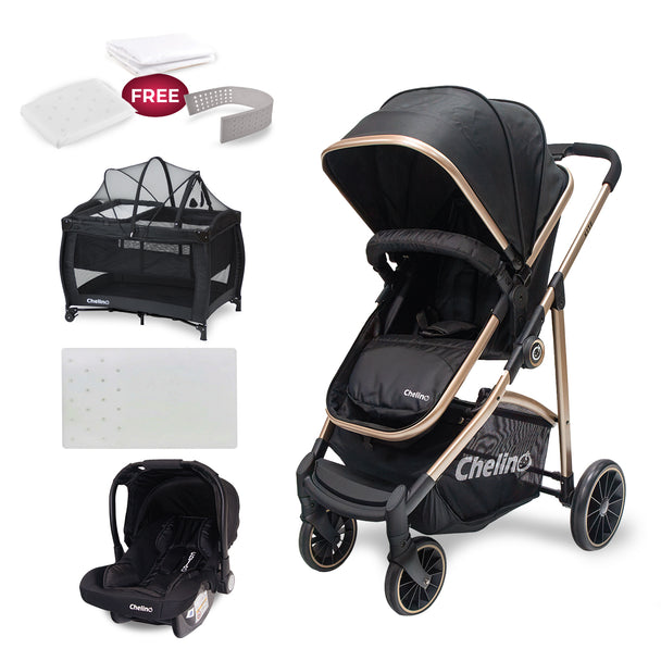 Regular price R 2,999.99BELLA BLACK CHROME CARRY COT Elegantly designed for your baby’s first months, the Bella Black Chrome Carry Cot is a stylish and supportive companion on the go. The Bella Shiny Black & Gold model includes a... -