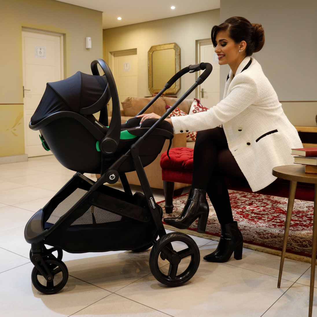 The Onida Flex II Travel System combines a sleek, modern design with exceptional functionality, offering a stylish look that is sure to turn heads. Beyond its aesthetic appeal, this stroller is lightweight and highly maneuverable, making it the perfect choice for on-the-go parents. Its compact size and responsive wheels ensure smooth, effortless navigation, even in crowded or busy spaces.
