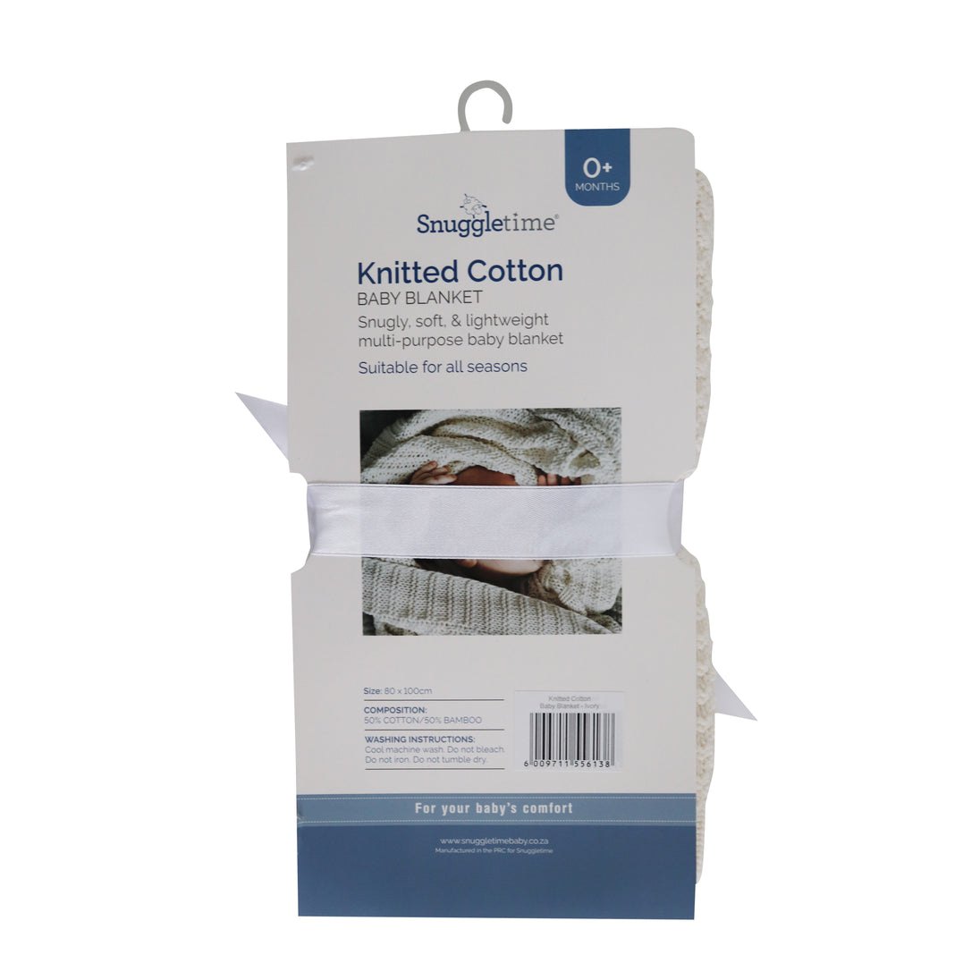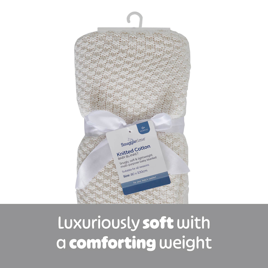 556138 KNITTED COTTON AND BAMBOO BABY BLANKET CREAM (80cm x 100cm)