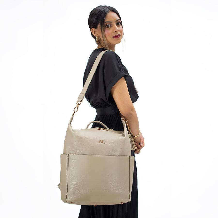 Perfect for first time moms who need generous space without the bulk, Camilla balances practicality with elevated style. With a versatile design that converts from backpack to shoulder carry and smart internal organisation, there’s a place for everything. Carry her your way. Pack without limits. Confident, capable, and beautifully practical, she’s convenience with power.