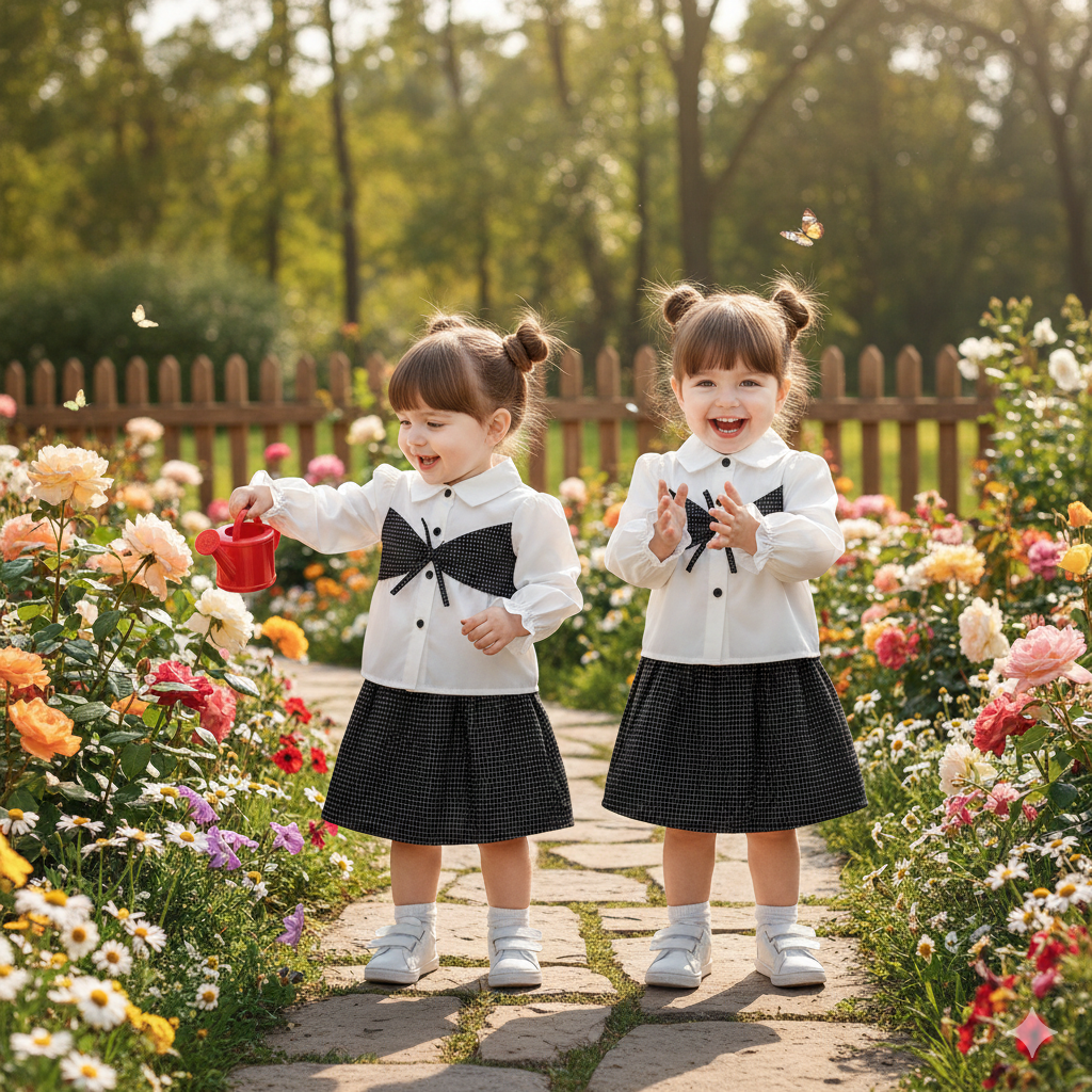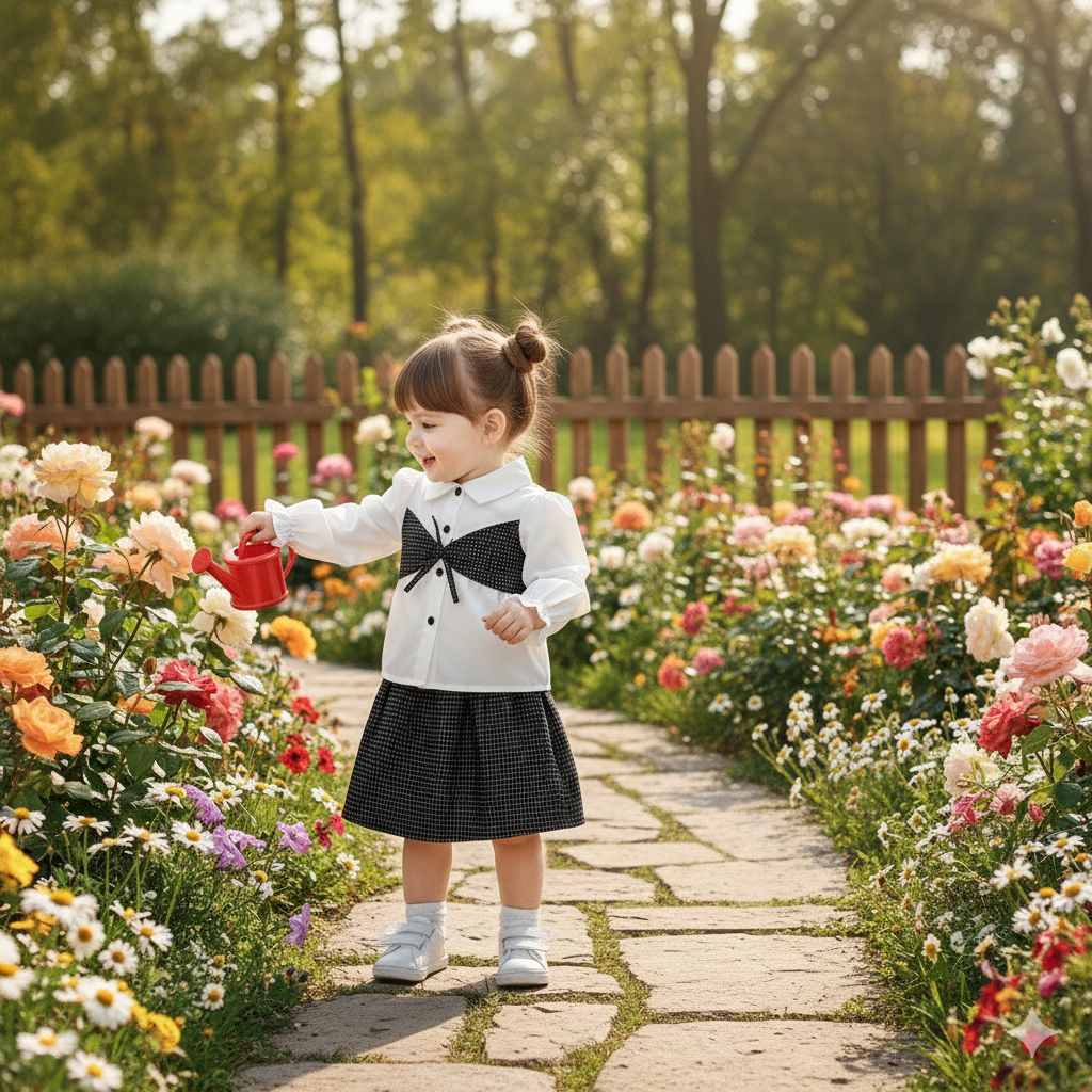 Paired with a matching mini skirt, the set creates a coordinated outfit that’s perfect for family outings, photoshoots, or special occasions. Crafted from soft, breathable fabric, this set ensures comfort while keeping your baby girl stylish and ready to play.