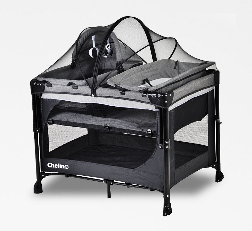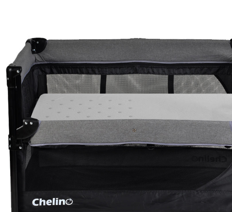 The Chelino Tiffany Lux II Co-Sleeper Camp Cot with Mattress the perfect combination of comfort, safety, and convenience for both parents and babies. This versatile cot is designed to keep your baby close during the night, providing the benefits of co-sleeping while ensuring their safety and comfort. It includes a soft, supportive mattress for a restful sleep, and can easily transition from a co-sleeper to a regular camp cot as your baby grows.