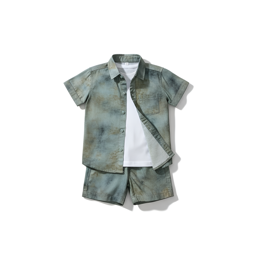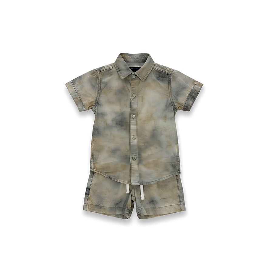 CAMOUFLAGE DEMIN 3PC SHORT SLEEVE SHIRT & SHORT SET