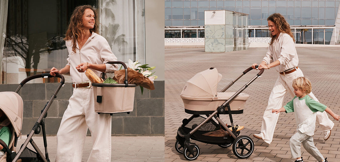 The Gazelle S double stroller has the perfect set-up for your growing family, with more than 20 configurations available. Features two large shopping baskets and a one-pull harness.