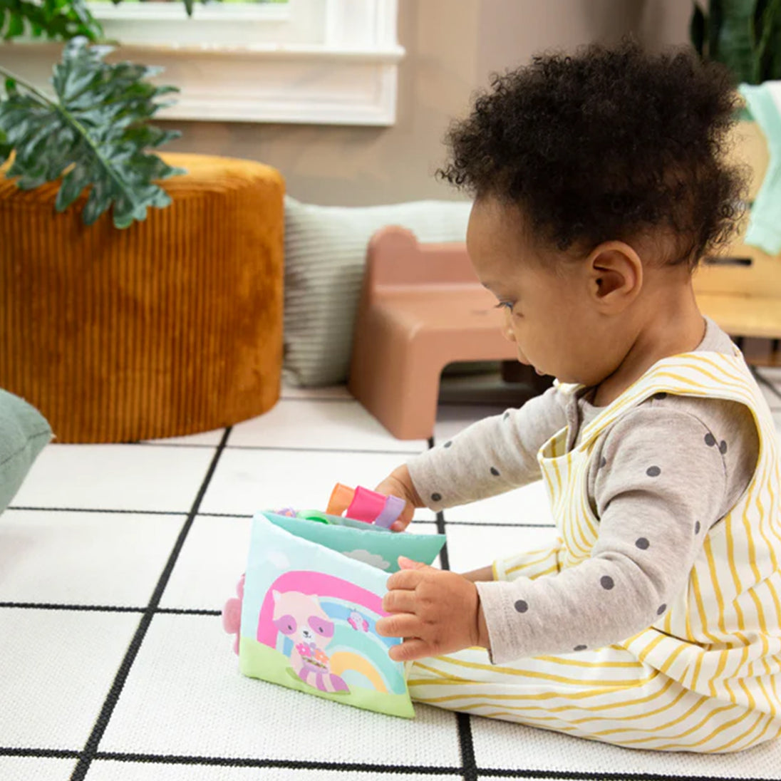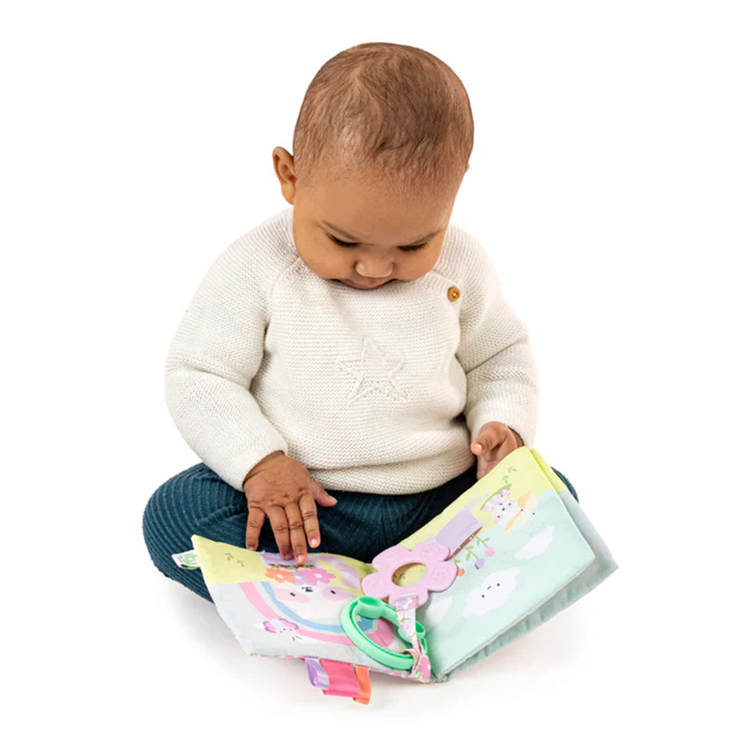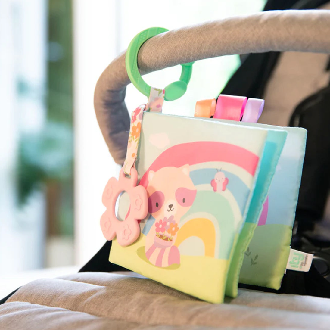 Raise baby to be a bookwork from birth with the ity by Ingenuity Soft Book - Deni! This 4-page language-neutral book is made of soft plush materials and features Deni the raccoon. The soft book features multiple textures to keep baby engaged, such as the crinkle (hidden inside) and 3 satin ribbon tags.