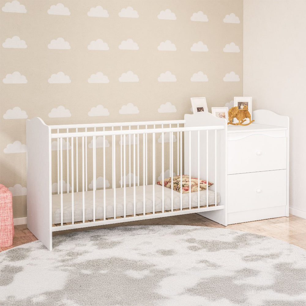 Create the perfect nursery with the Cot and Dresser Combo-a harmonious blend of modern design, functionality, and safety. Thoughtfully crafted to provide a secure and comfortable sleep space, this all-in-one nursery solution offers both versatility and convenience for growing families. Featuring a sleek, contemporary cot and a matching dresser with ample storage, this combo is designed to make parenting easier while elevating your nursery's aesthetic.