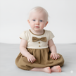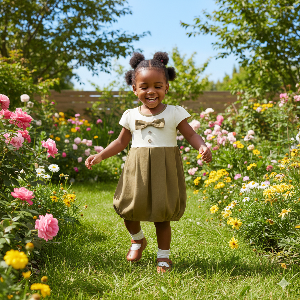 Crafted from soft, breathable fabric, it keeps your baby girl comfortable while maintaining a structured, stylish appearance. The warm mocca and cream colour combination adds a timeless, versatile appeal, making it easy to pair with matching accessories or footwear for a complete outfit.