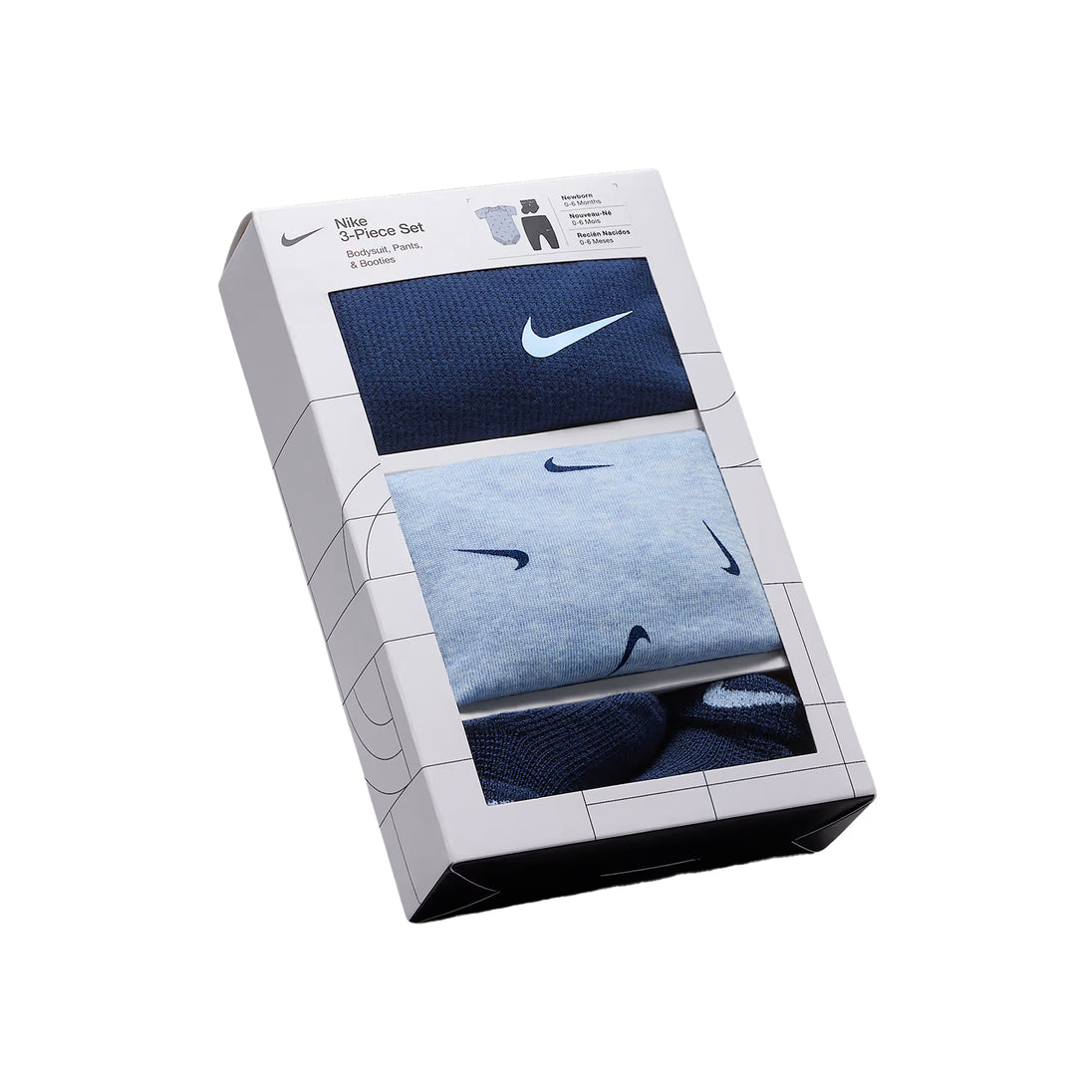 Keep your little one cozy, stylish, and ready for anything with the Nike 3-Piece Bodysuit & Waffle Pant Set. Designed with both comfort and function in mind, this adorable outfit includes a soft rib-knit bodysuit, textured waffle-knit pants, and a matching pair of stretch socks all in a classic Midnight Navy colorway.