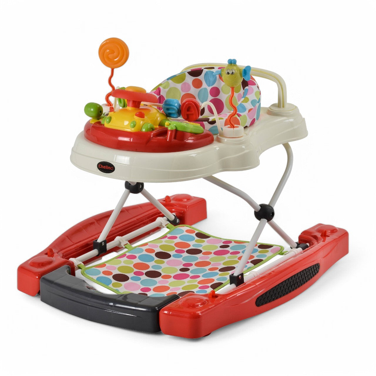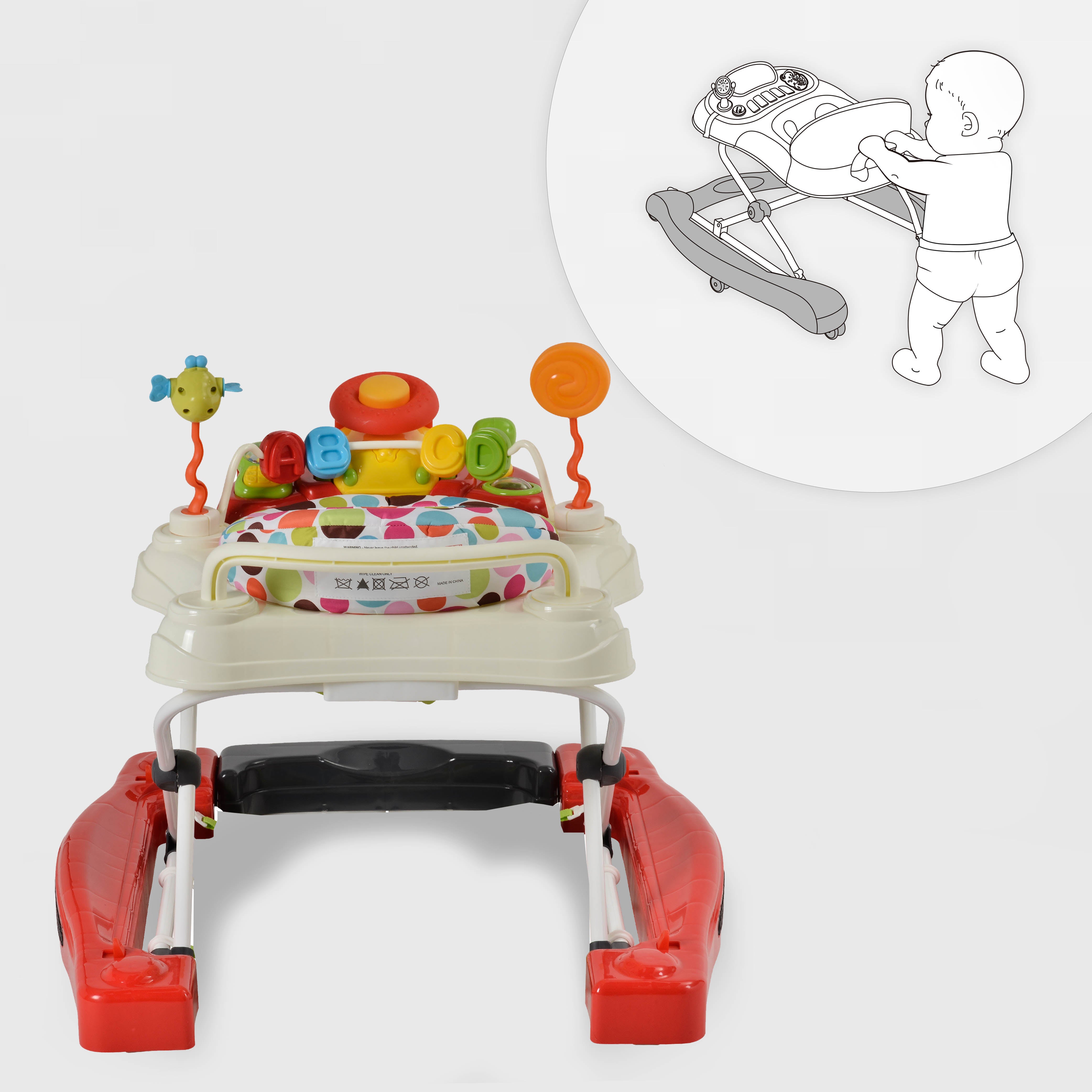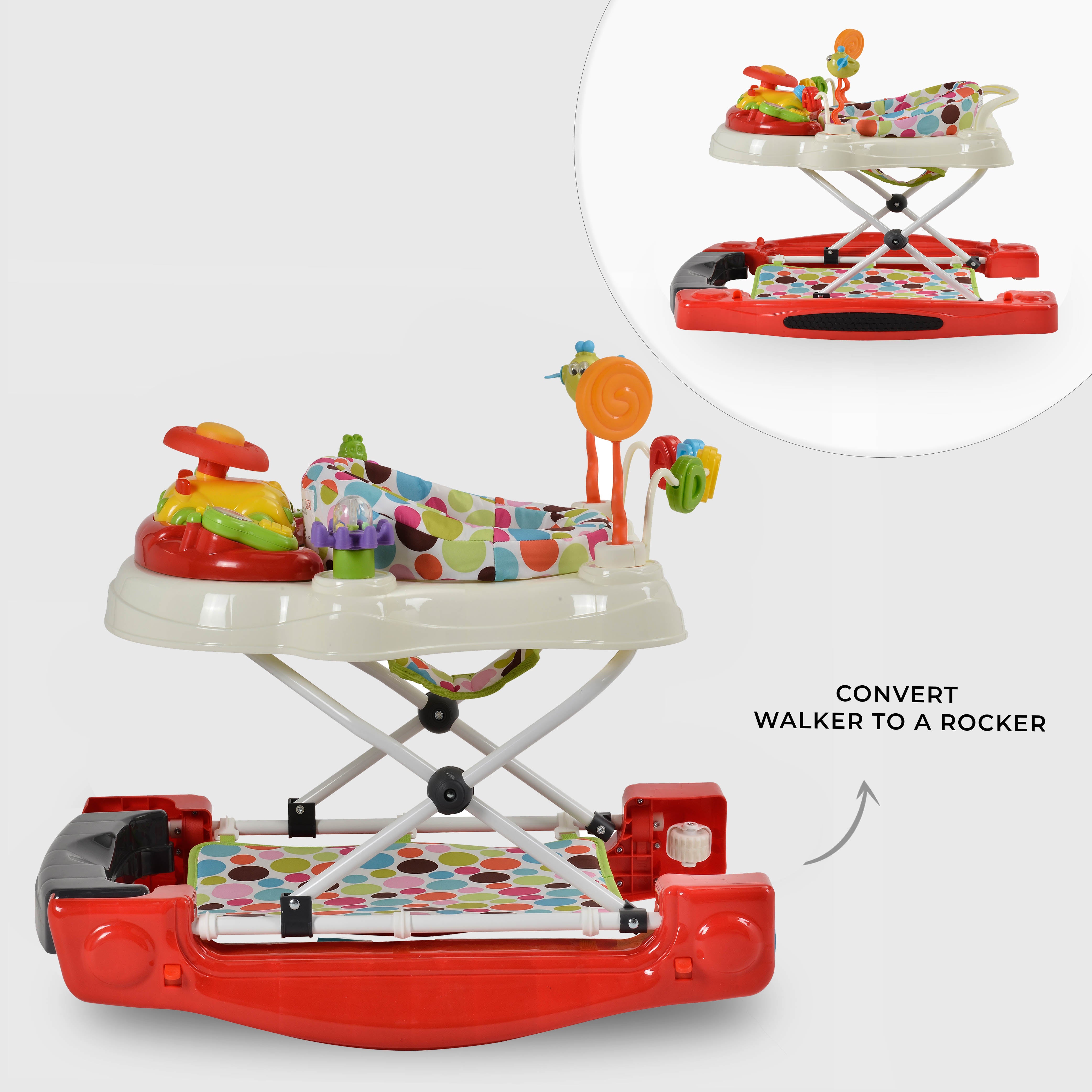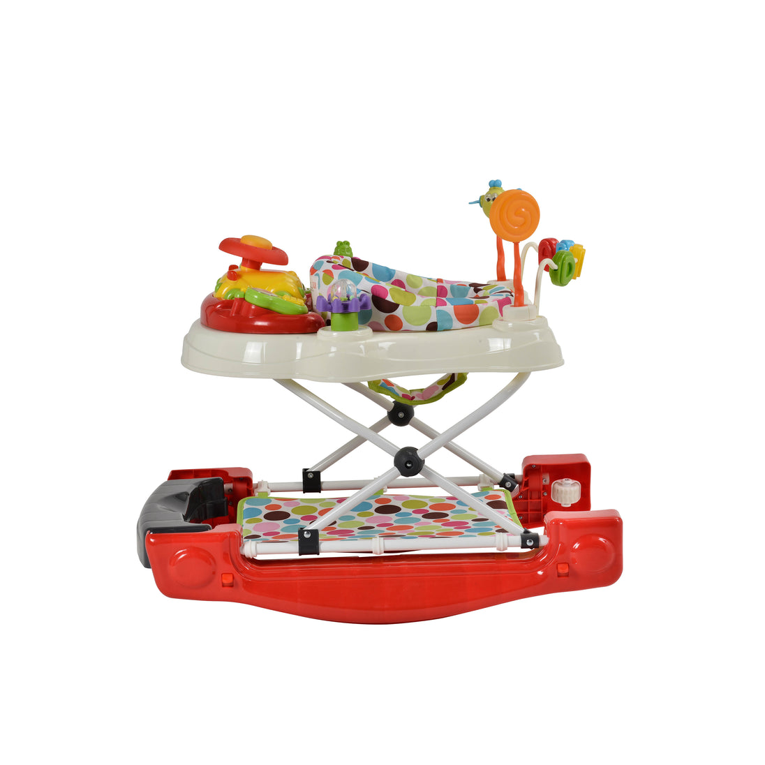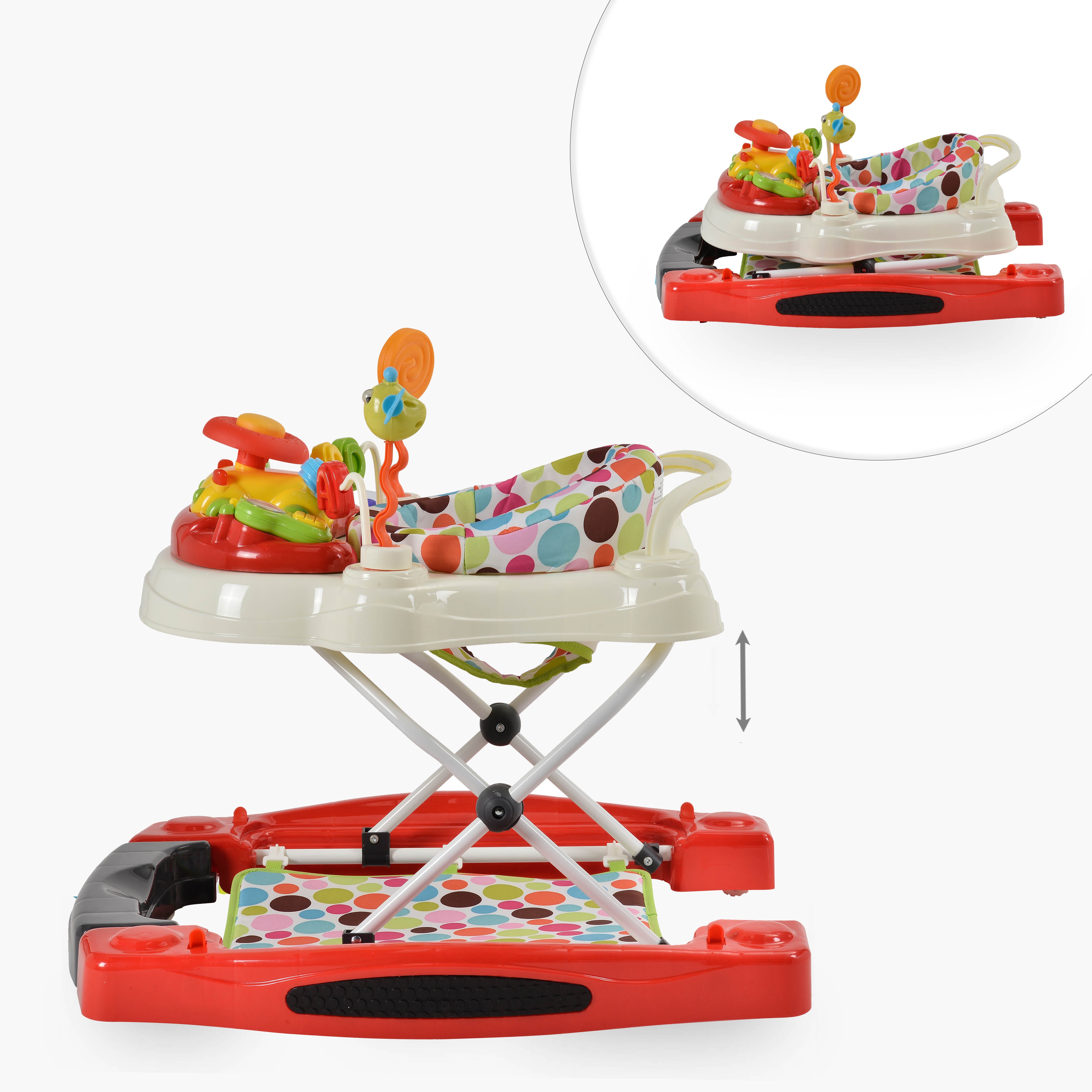 The Rocker Walker is a fun, engaging walker that helps your baby take their first steps. It features an interactive activity center with adorable characters and battery-operated melodic sounds to keep your little one entertained while developing motor skills. The walker provides a safe and supportive design for your baby to explore and play.