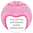 Cools & Soothes Aching Gums. The Cooling Teether Toy is a non-toxic, gel-filled teether that provides soothing relief for itchy, painful gums during the teething phase. It introduces babies to a variety of colors and different textures, while also doubling up as a toy to help develop their grip. Additionally, this teether aids in the development of hand-eye coordination and fine motor skills.