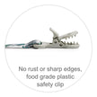 - Clips firmly onto clothing, bibs, or stroller straps without damage.